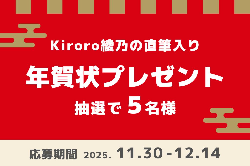 今年も『Kiroro綾乃のママでいいよ!』をご愛聴いただき、誠にありがとうございます!リスナーの皆様へ感謝の気持ちを込めて、Kiroro綾乃の直筆入り年賀状を抽選で5名様へプレゼントさせていただきます!ご希望の方は、住所・氏名・電話番号・「年賀状希望」を添えてこちらのフォームよりお送りください。当選者の発表は、年賀状の発送をもってかえさせていただきます。皆様からのご応募、お待ちしています✨