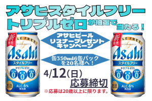 アサヒスタイルフリー トリプルゼロ リスナープレゼントキャンペーン!